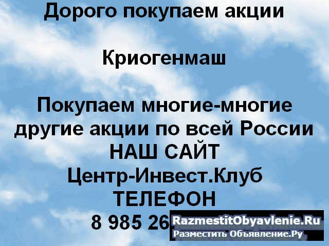 Дорого покупаем акции Криогенмаш в любом городе