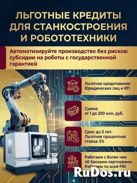 ЛЬГОТНЫЕ КРЕДИТЫ ДЛЯ ФИНАНСИРОВАНИЯ ОБОРУДОВАНИЯ И ОБОРОТНЫХ СРЕДСТВ ( ПРОГРАММЫ ГОС.ПОДДЕРЖКИ ДЛЯ БИЗНЕСА ВНЕДРЯЮЩЕГО РОБОТОВ).