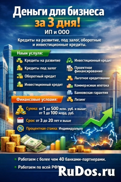Бизнес-кредиты до 500 млн. руб. и выше по РФ! Деньги на развитие и оборотные средства