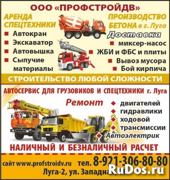 - Аренда спецтехники: миксер, бетононасос, автокран, экскаватор, самосвалы, вышка, гидромолот, крашер по бетону, экскаватор-погрузчик.