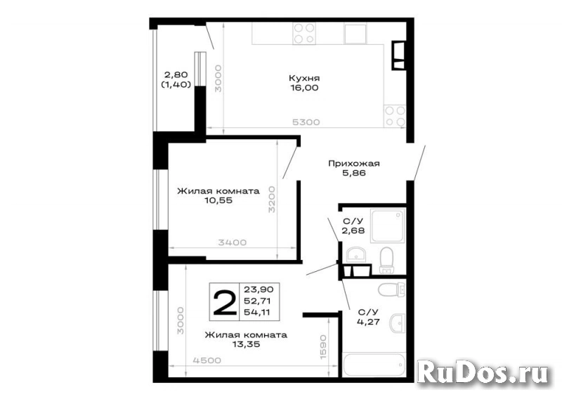 - Общая площадь (м2): 54.11