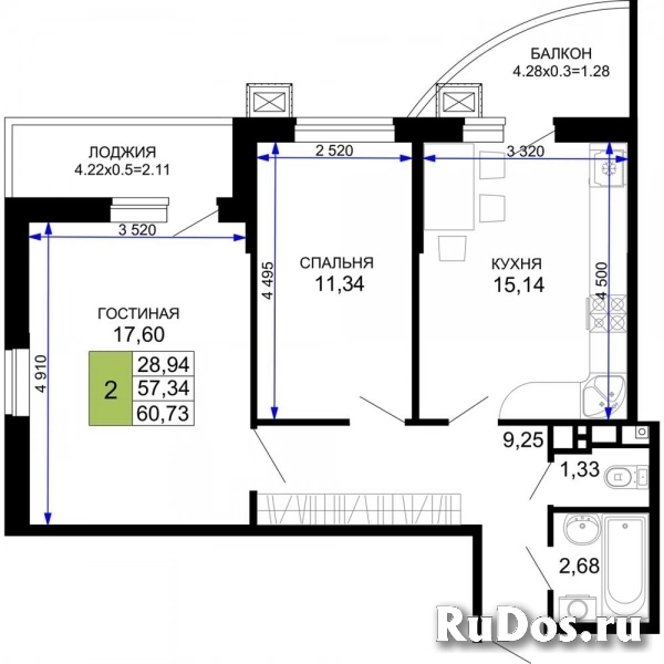 - Общая площадь (м2): 60.73