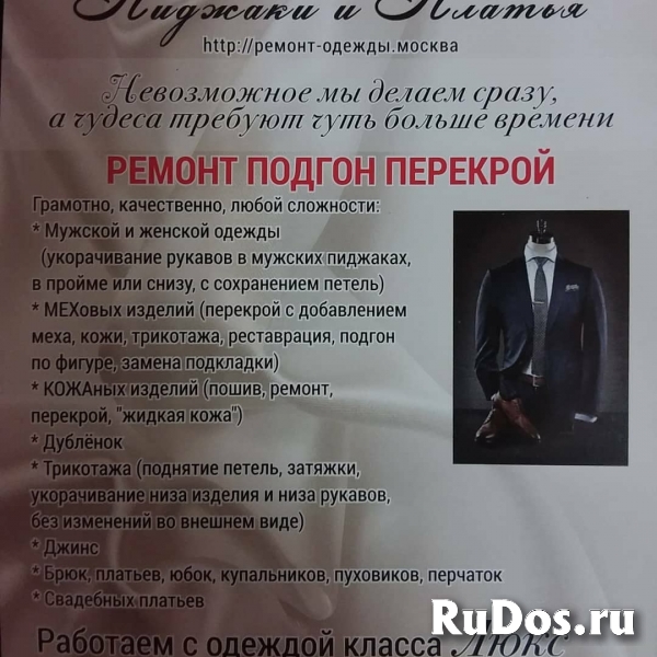 Наши специалисты одни из лучших дипломированных мастеров. Осуществляем РЕМОНТ ПОДГОН ПЕРЕКРОЙ Мужской и женской одежды класса Люкс. Укорачивание рукавов в мужских пиджаках с сохранением петель. МЕХовых изделий пошив, перекрой с добавлением меха и нат.кожи, кружева, трикотажа ), КОЖАных изделий ( пошив, перекрой, ремонт разрыва, жидкая кожа), Трикотажа,