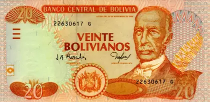 Банкнота 20 боливиано, старый выпуск. Боливия