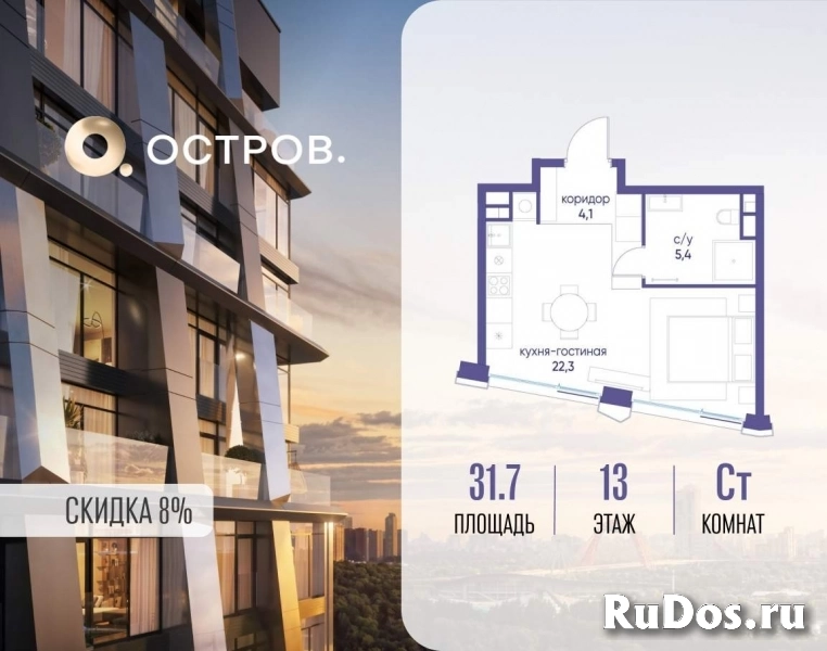 Продаётся квартира от застройщика: общая площадь 31.70 м, жилая 17.30 м, кухня 5.00 м, 13-й этаж, жилой квартал «Остров 12», корпус 2 (секция 1) . Срок сдачи: 1 квартал 2029 года.