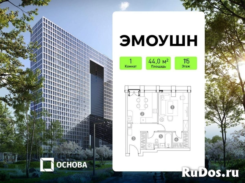 Продаются 1-к апартаменты площадью 44.0 кв.м. на 15-м этаже 28 этажного дома в "ЭМОУШН" от ГК ОСНОВА