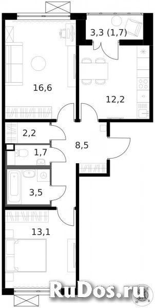 - Количество комнат: Двухкомнатная