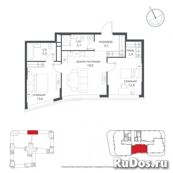 - Количество комнат: Двухкомнатная