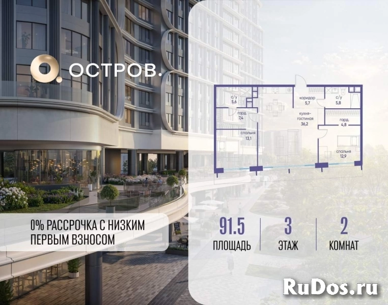 Продаётся 2-комн. квартира от застройщика: общая площадь 91.50 м, жилая 26.00 м, кухня 36.20 м, 3-й этаж, жилой квартал «Остров 7», корпус 3 (секция 1) . Срок сдачи: 1 квартал 2028 года.