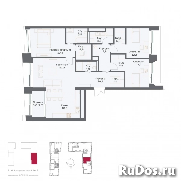 - Количество комнат: Четырехкомнатная