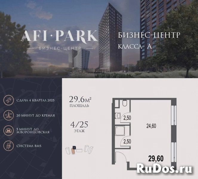 Продается просторное коммерческое помещение общей площадью 29,6 м2 на 4 этаже в строящемся бизнес-центре AFI Park.