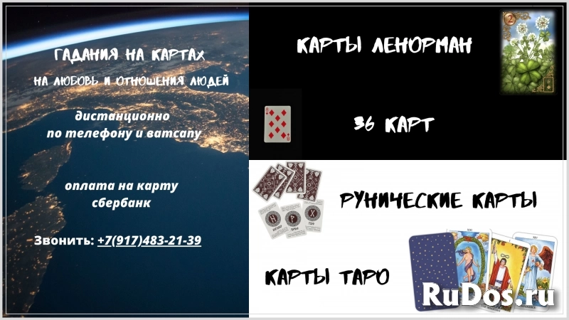 Подробные гадания (на рунах, Таро, Ленорман, 36 карт, так же могу сказать по датам рождения, если интересно) по ватсапу и телефону на отношения и любовь, отвечаю на все вопросы, гадаю час и магическая помощь (800-1200 рублей) по фото. Оплата на карту сбербанк. Кто обращается погадать в первый раз плотит 500 рублей. Постоянные клиенты платят 350 рублей. Звонить: +7(917)483-21-39 Реги