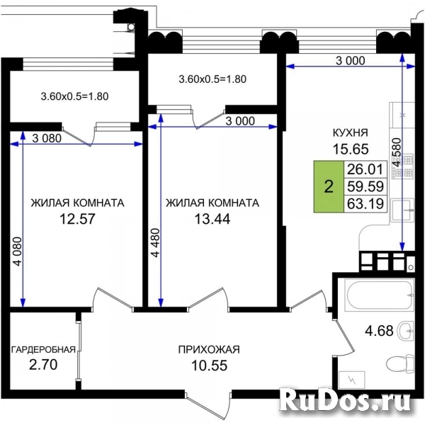- Общая площадь (м2): 63.19