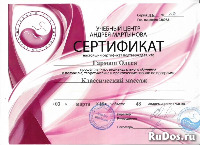 - Услуги: Массаж