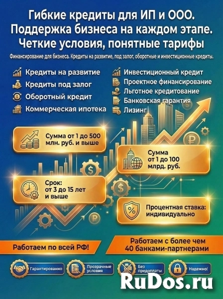 Гибкие Кредиты малому и среднему бизнесу по РФ! Деньги на развитие и оборотные средства!