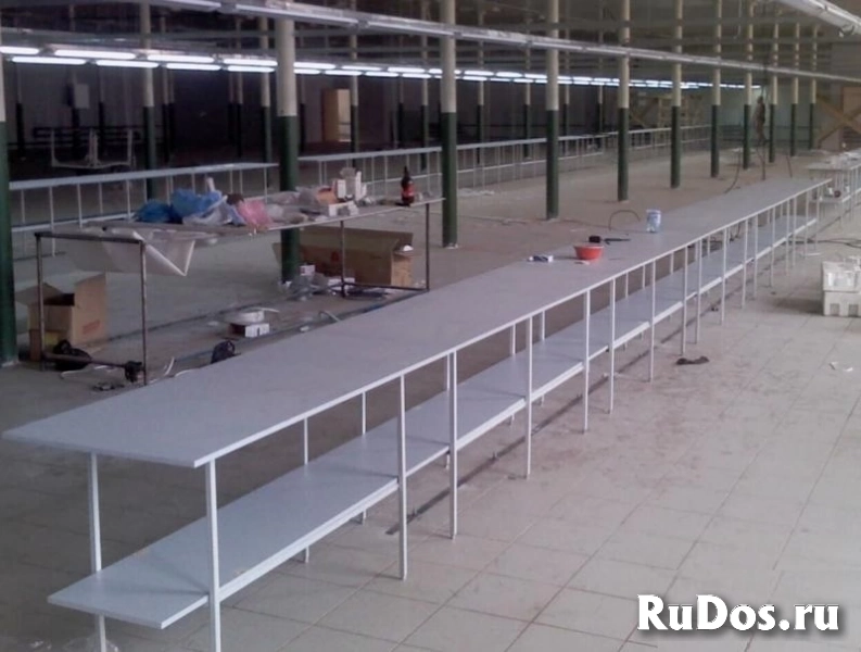 Столы раскройные и межстолья швейные с ЛДСП. Каркасы столов выполнены сборными из профильных труб. Размеры столов любые изготовляем под заказ. Столешница и полка выполнены из ЛДСП.