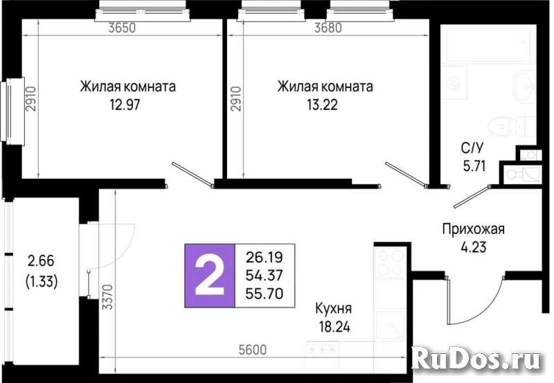 • Общая площадь (м2): 55.7